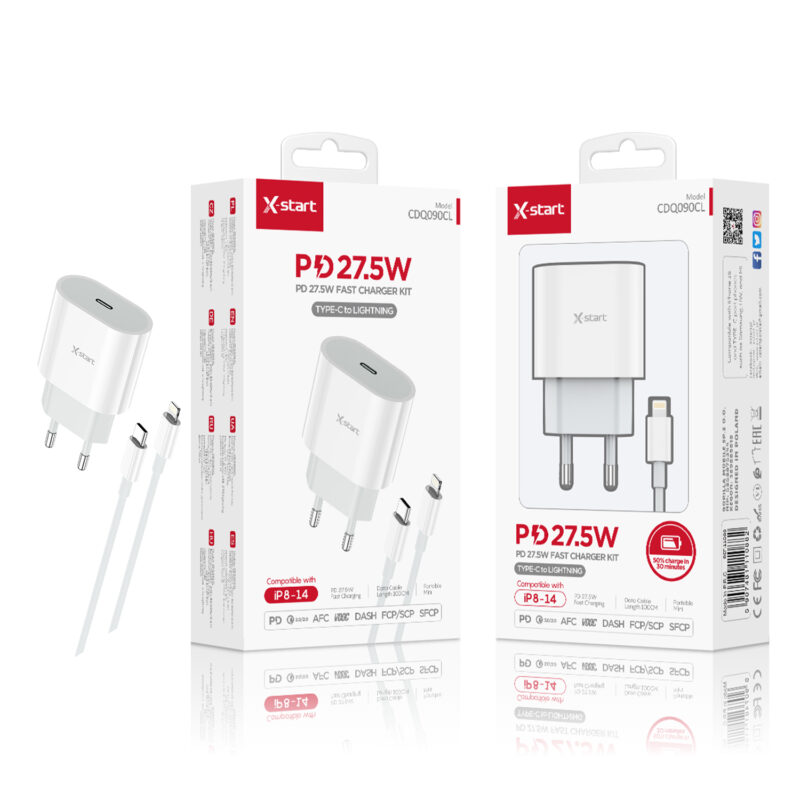 CDQ090CL 快充套装 White PD 27.5W Fast Charging Kit, Single USB-C with (USB-C to Lightning) Cable, 1M Length
