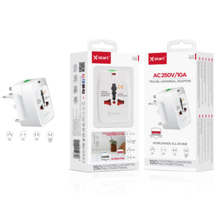 R28 多功能充电器White 10A Multi-functional Charger, compatible with over 150 countries and regions worldwide, 110V-250V, supports UK/EU/US/NZ plug adapters, ABS fire-retardant shell.