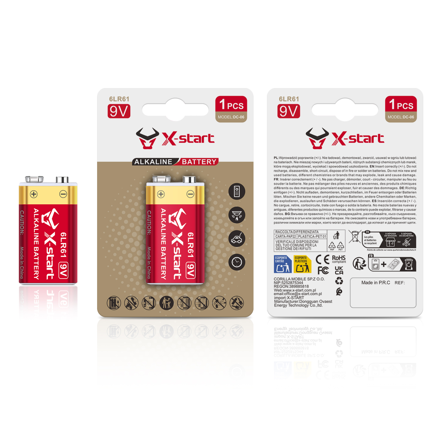 6LR61/9V 碱性绿色环保电池Alkaline Green Environmentally Friendly Battery 600mAh 9V Mercury-Free and Cadmium-Free 10-Year Warranty Alloy Casing