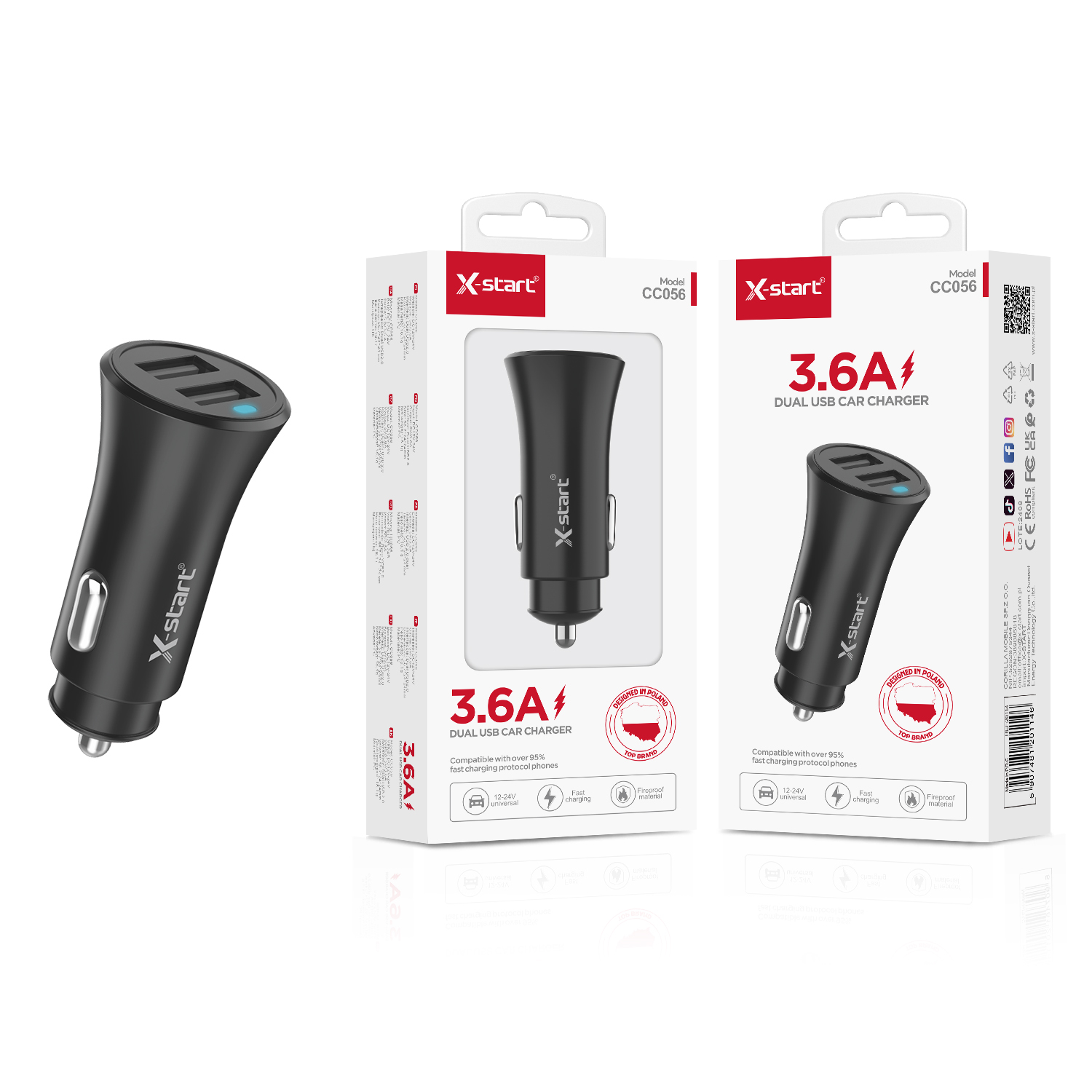 CC056 车载充电器 Black 3.6A Car Fast Charger 12V-24V 2xUSB-A ABS Fireproof Shell