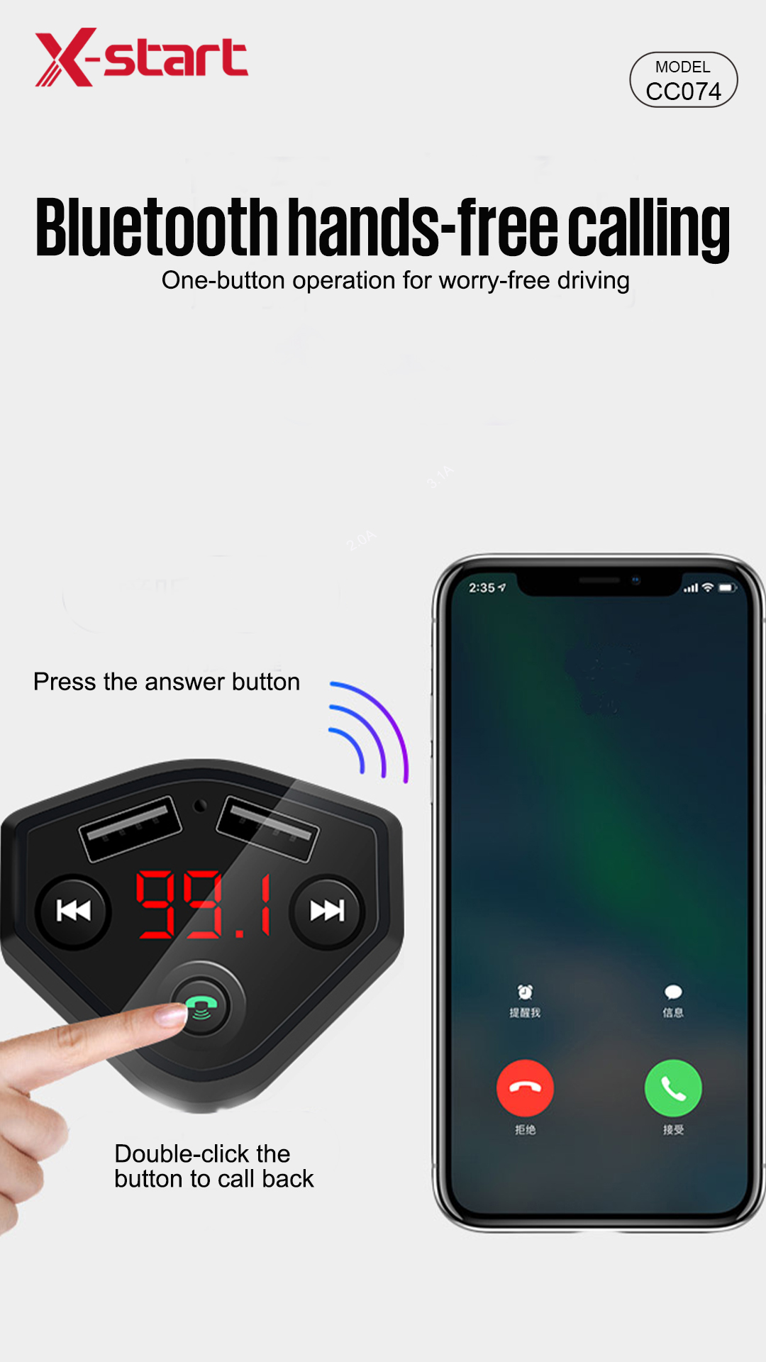 CC074 Bluetooth Car MP3 Player – Hands-Free Calling & One-Button Control