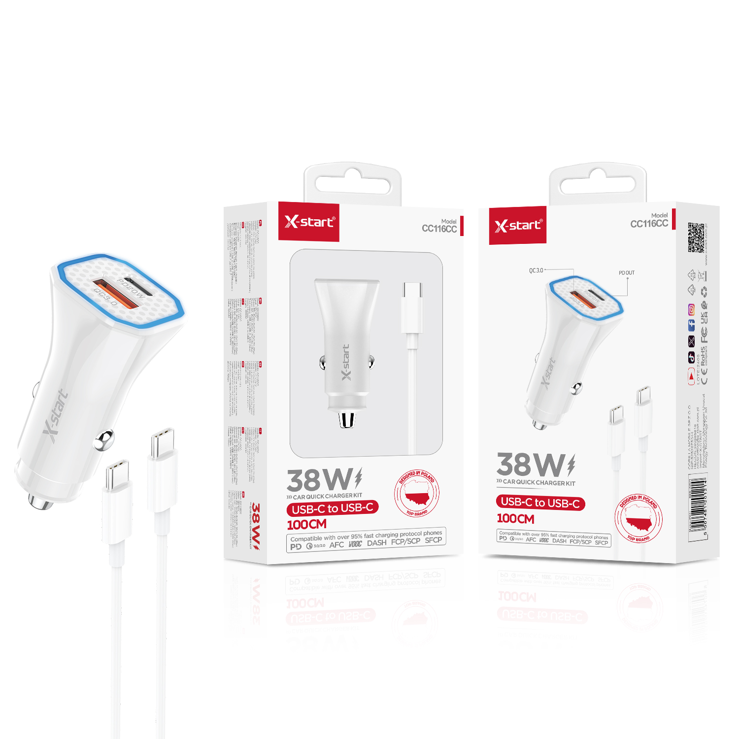 CC116CC 车载快速充电套装White 38W Car Fast Charging Kit, 1m cable, 12-24V