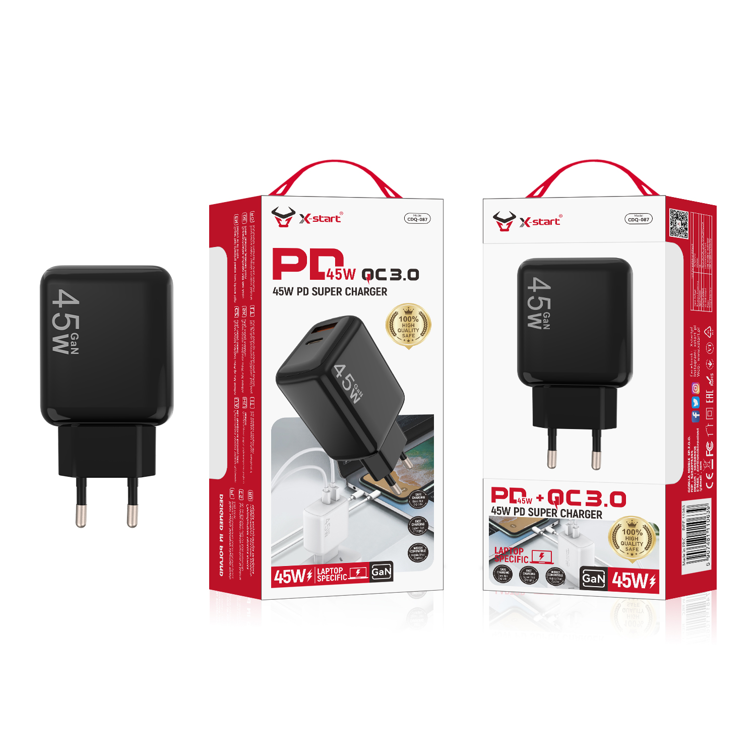 Be the first to review “CDQ087 快速充电器 Black 45W GaN Fast Charger 100V~240V 2x (USB-A + USB-C) ABS Fire-retardant Shell” Cancel reply