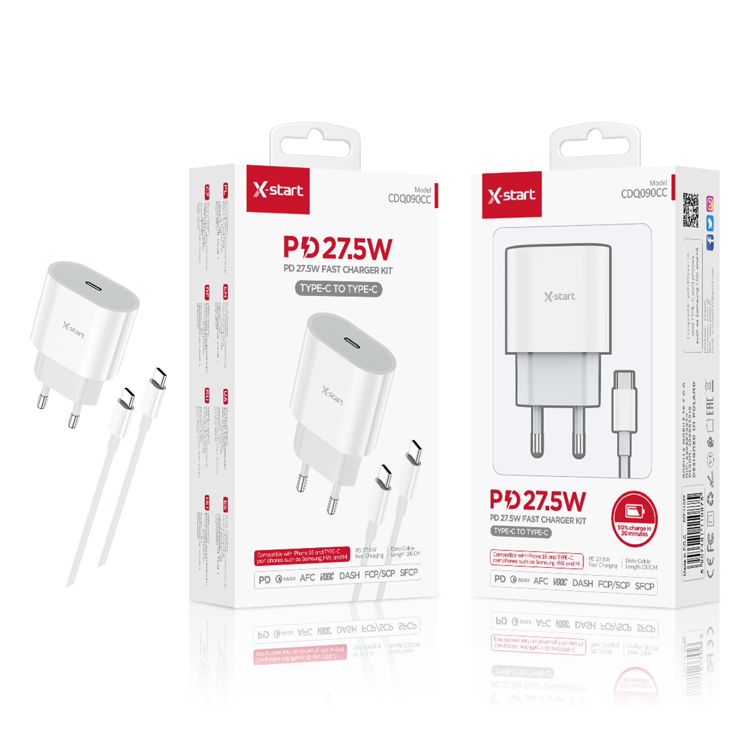 CDQ090CC 快充套装White PD 27.5W Fast Charging Kit, Single USB-C with (USB-C to USB-C) Cable, 1M Length