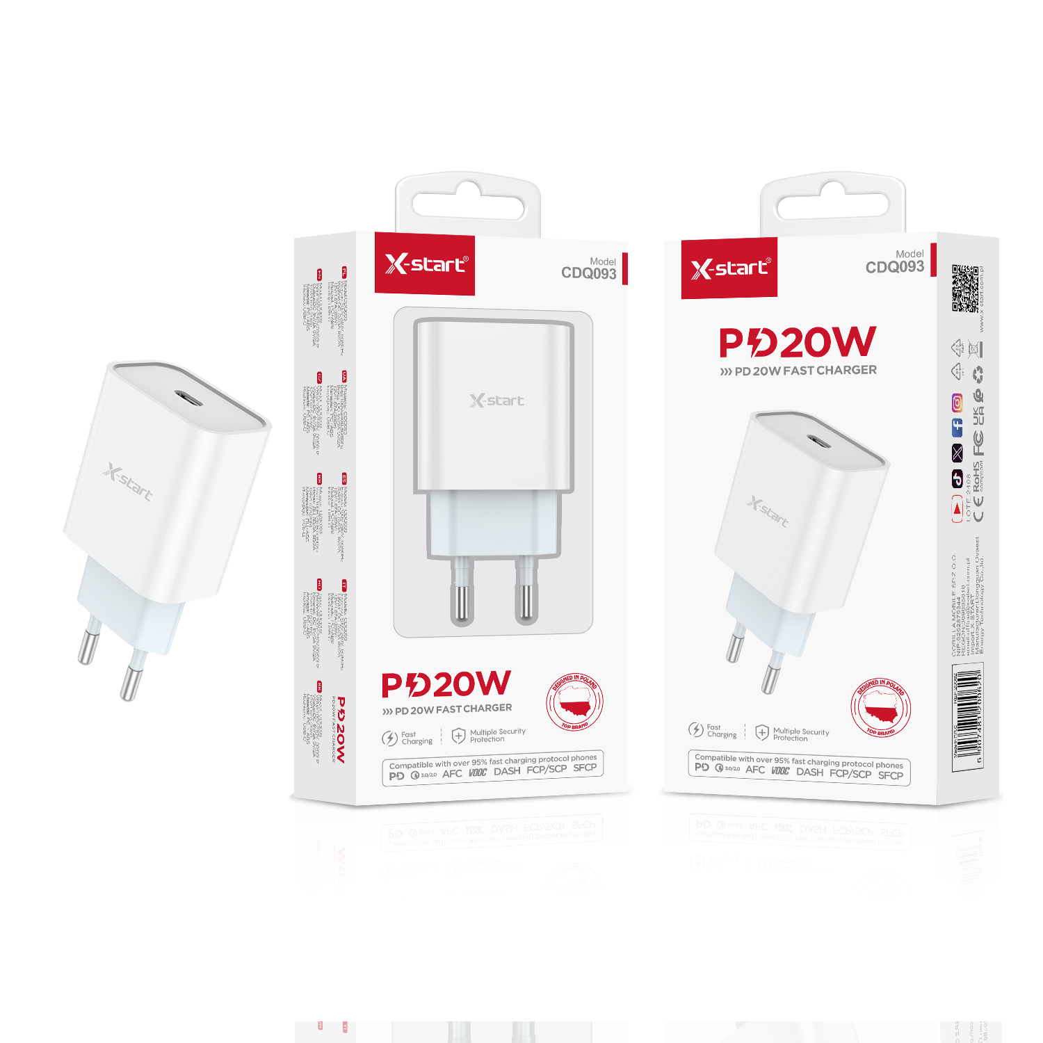 CDQ093 快速充电器White 20W EU Fast Charger, Single USB-A, 100V~240V, 50/60Hz, ABS Shell