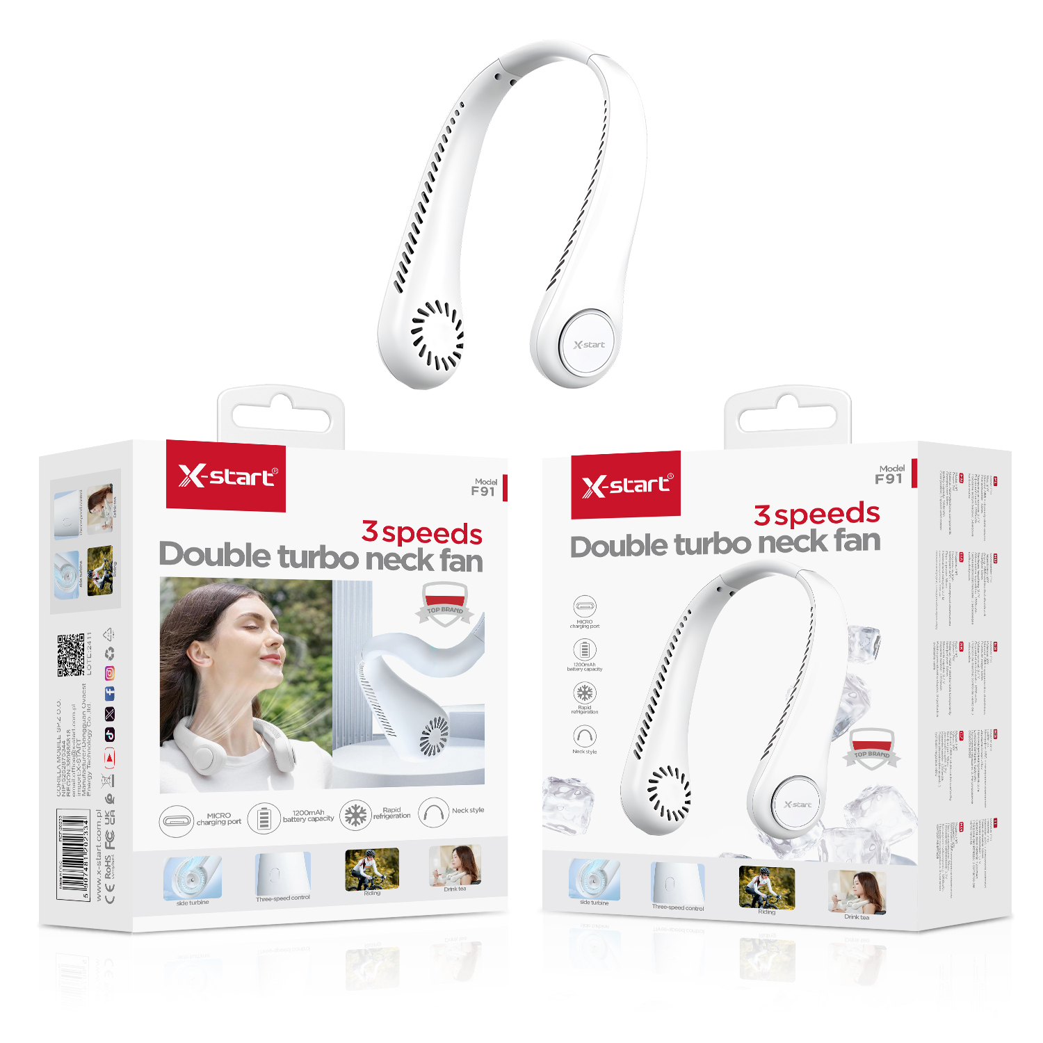 F91 挂脖小风 F91 White Neck Fan 2W 3.7V/1200mAh Micro Charging Port 3-Speed Wind Control ABS Shell Neck Fan 2W 3.7V/1200mAh Micro Charging Port 3-Speed Wind Control ABS Shell
