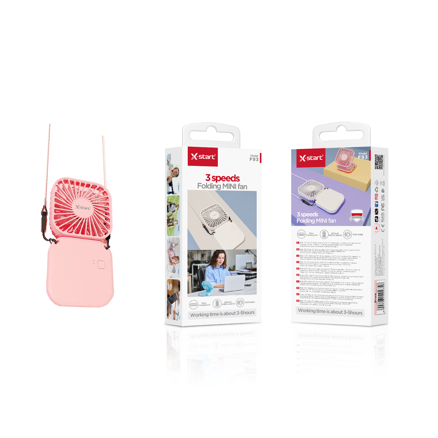 F93 Pink Folding Mini Fan 2W 3.7V/800mAh Micro Charging Port 3 Wind Speed Control ABS Shell