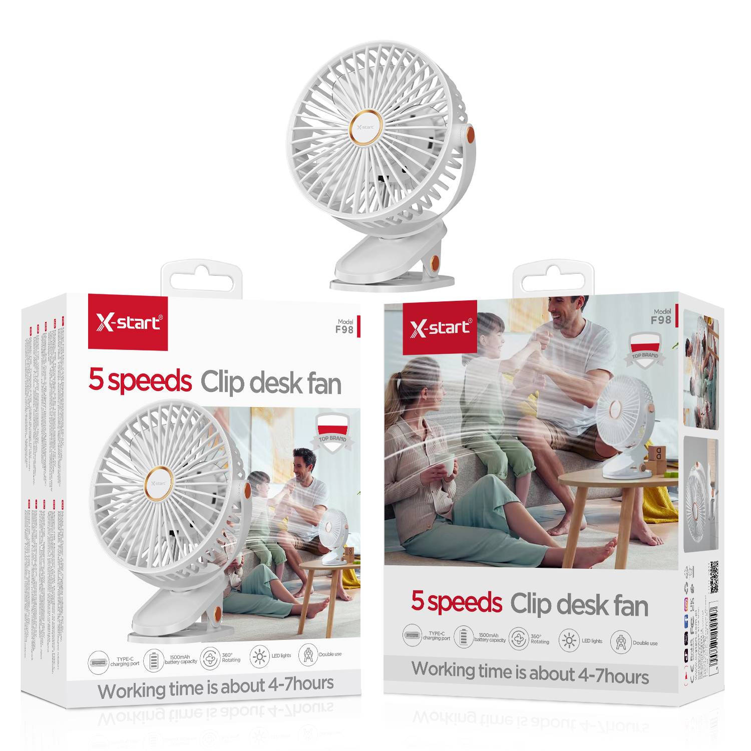 F98 迷你小风扇 White Mini Desktop Fan 2.5W 3.7V/18650AR x 2pcs TYPE-C 5-speed fan control Ambient lighting ABS shell