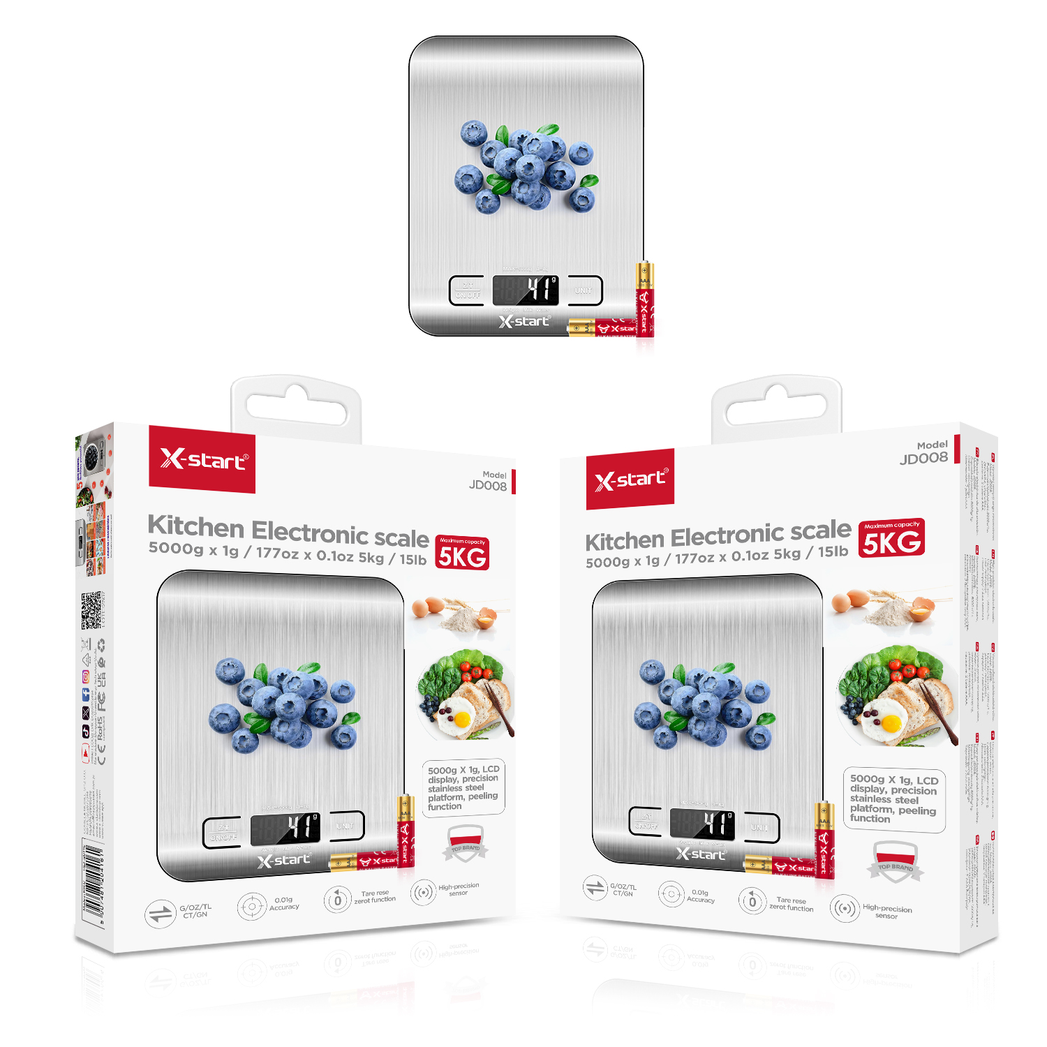 JD008 厨房电子秤 Silver Kitchen Scale with Digital Display 5KG (max) d=1g AAAx2pcs Alloy Casing