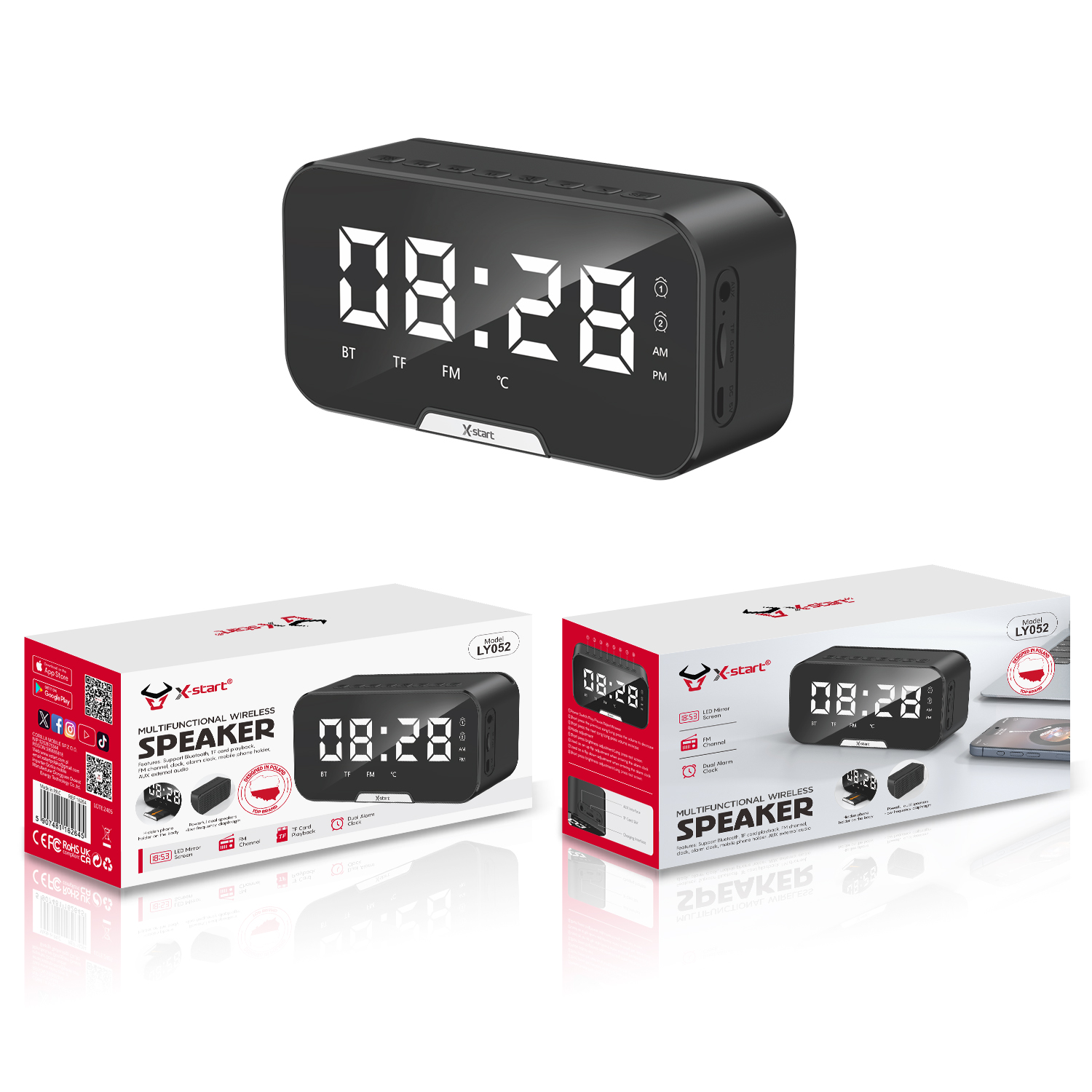 LY052 蓝牙闹钟音响 Black Bluetooth Speaker Alarm Clock 5W 3.7V/1200mAh Micro, Supports FM, AUX, External LED, ABS Shell