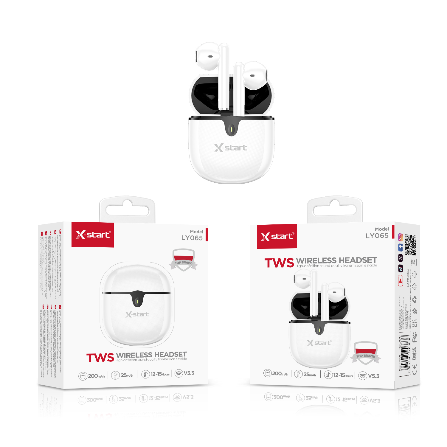 LY065 蓝牙耳机White TWS Bluetooth Earphone BT 5.3 2.4G Transmission Single-Ear 3.7V/25mAh TYPE-C 200mAh Unobstructed 10m ABS Shell