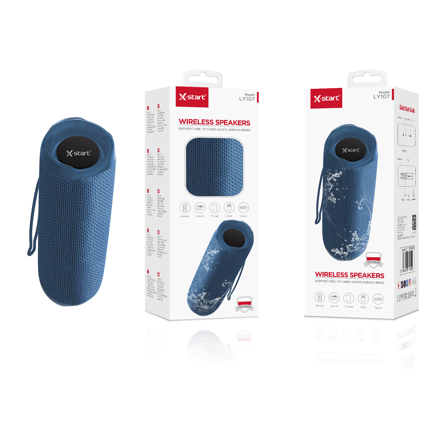 LY107 无线蓝牙音响 Blue Wireless Bluetooth Speaker 3.7V/800mAh TYPE-C BT 5.1 2.4G Supports USB flash drive, FM TF card, FM 3.5mm external connector ABS shell + fabric mesh cover