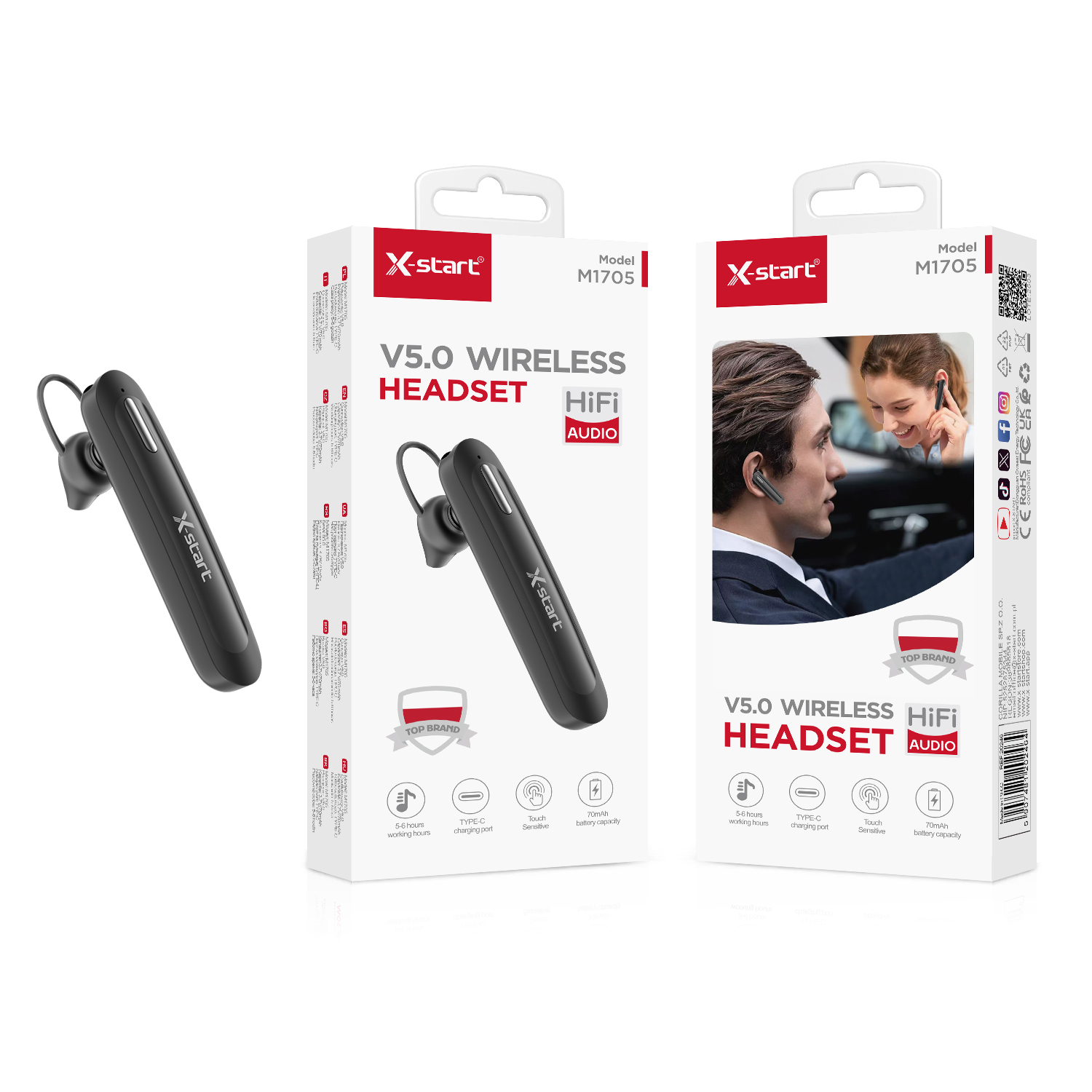 M1705 单边蓝牙耳机 Black Single-Ear Bluetooth Headphones V5.0 3.7V/70mAh TYPE-C ≥10m 20Hz-20KHz ABS Shell