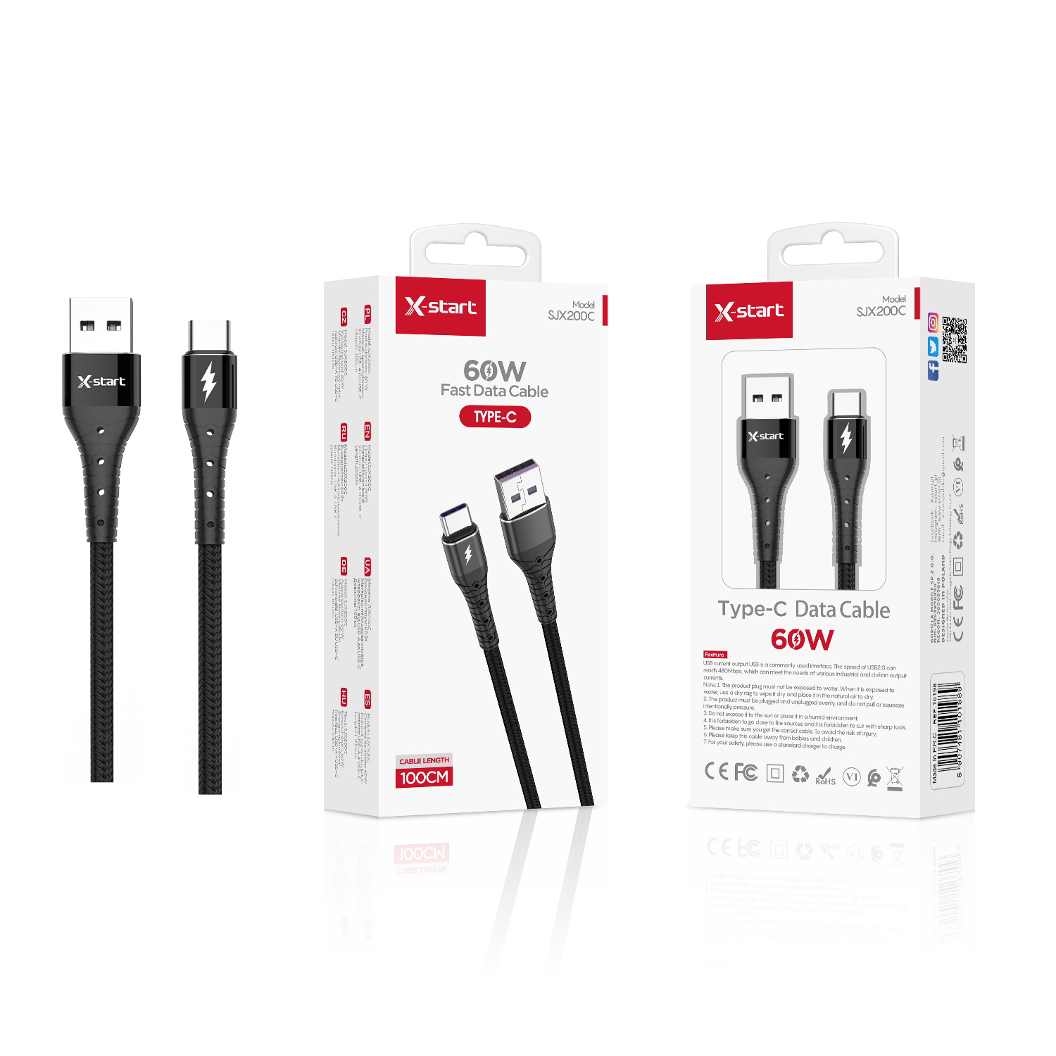 SJX200C 快充数据线Black 60W Braided Fast Charging Data Cable, 1M Length, Braided Outer Sheath, USB-A to USB-C