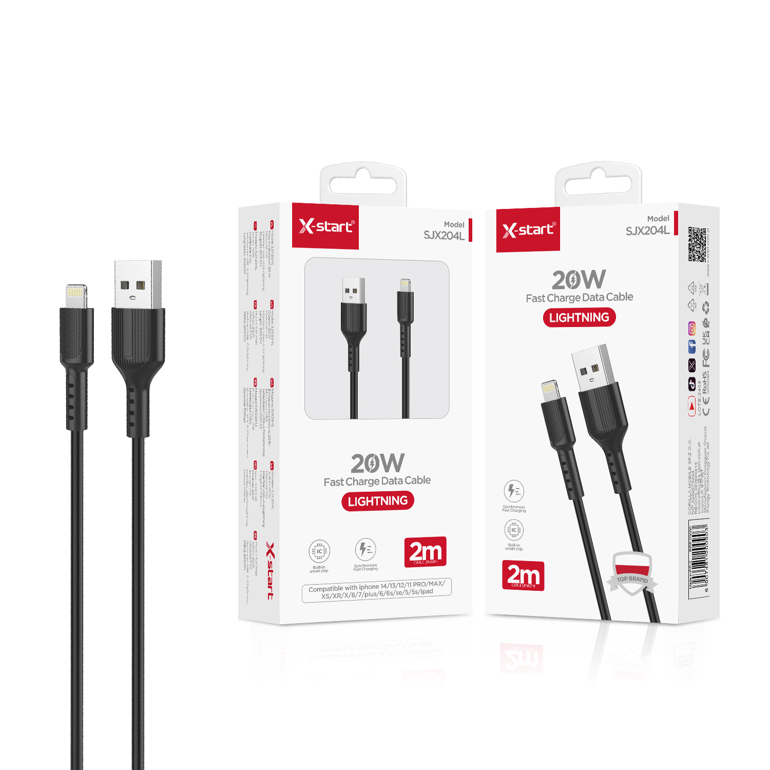 SJX204L 快充数据线Black 20W Fast Charging Data Cable, 2M Length, USB-A to Lightning, PVC Outer Sheath
