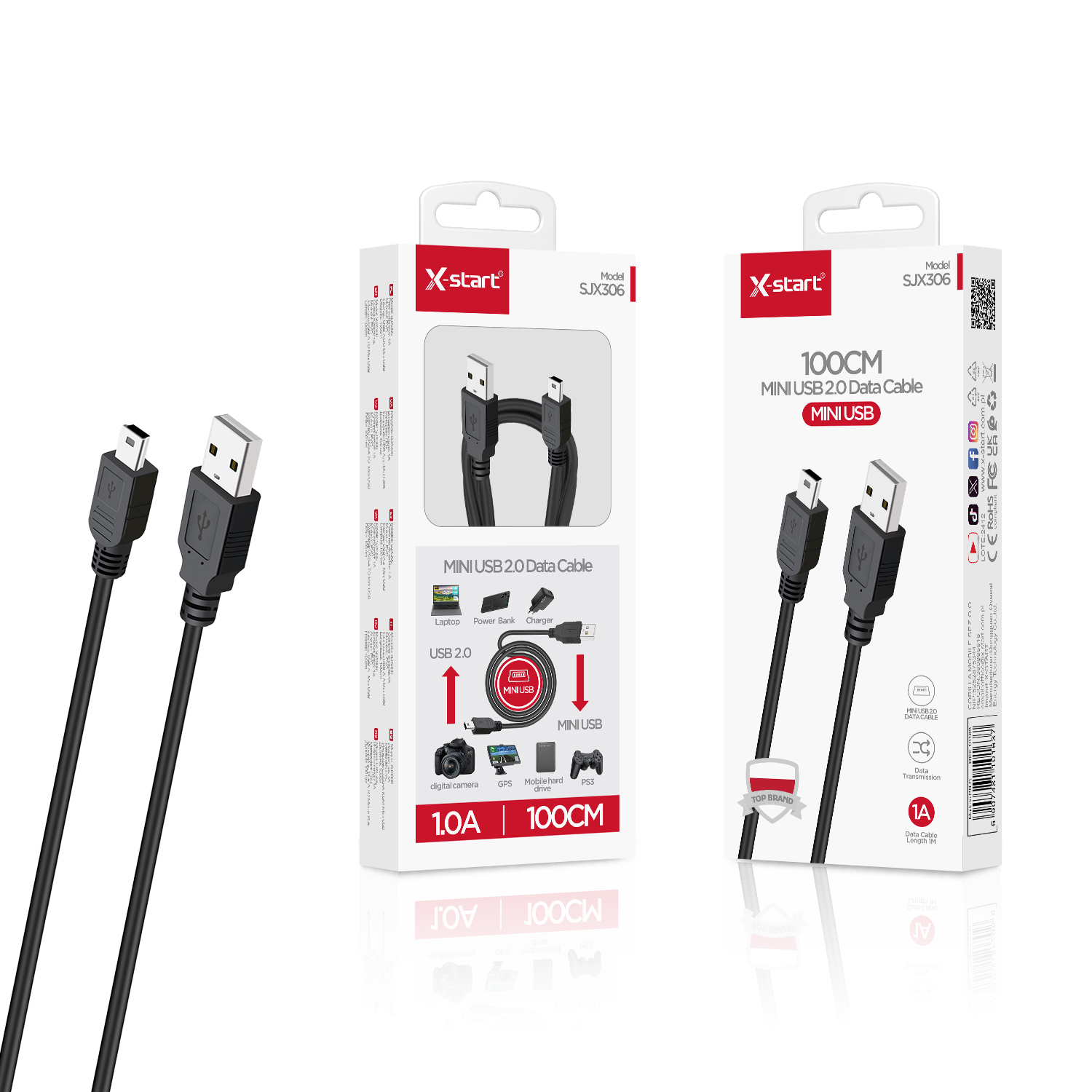 SJX306 V3数据线Black V3 Data Cable, 1M USB-A to mini USB, 1A, PU Outer Sheath