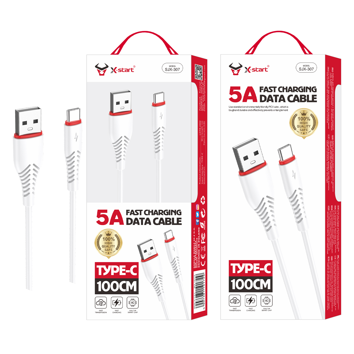 SJX307C 快充数据线White 5A Fast Charging Data Cable, 1M USB-A to USB-C, PVC Outer Sheath