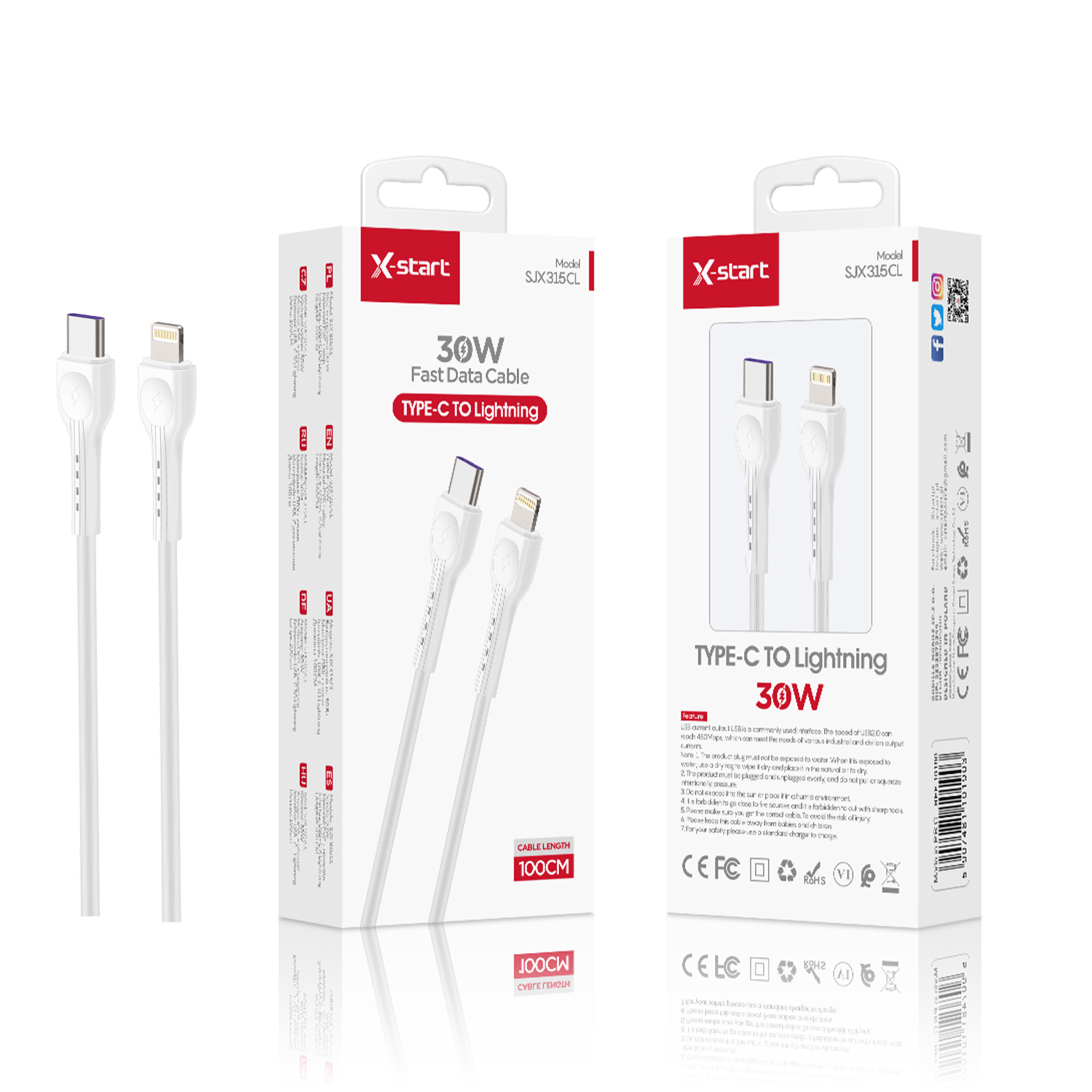 SJX315CL 快充数据线White 30W Fast Charging Data Cable 1M USB-C to Lightning PVC sheath