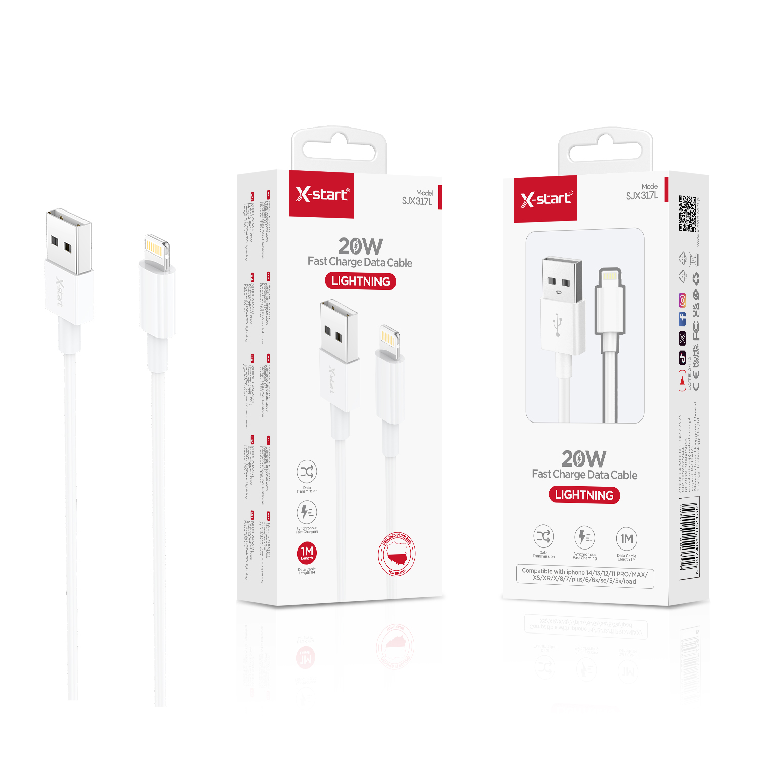 SJX317L 快充数据线White 20W Fast Charging Data Cable, 1M USB-A to Lightning, PVC Sheath