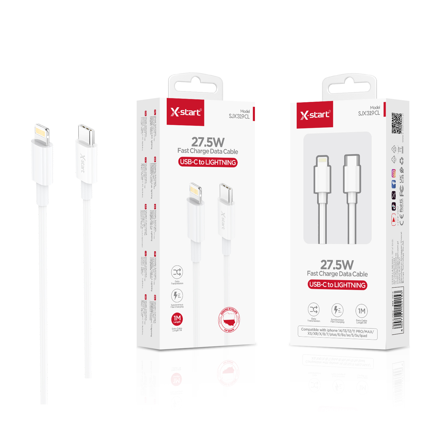 SJX319CL 快充数据线White 27.5W Fast Charging Data Cable, 1M USB-A to Lightning, PVC Sheath
