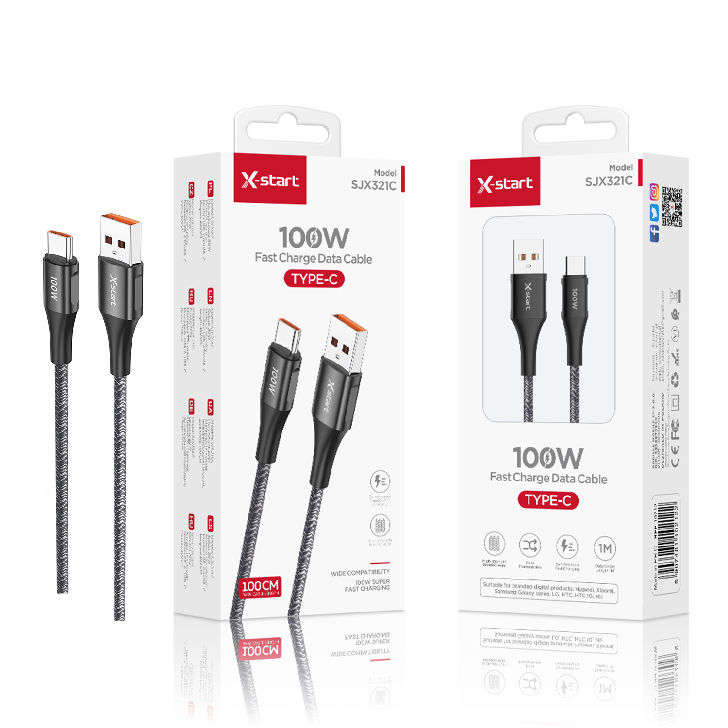SJX321C 编织快充数据线Black 100W Braided Fast Charging Data Cable 1M USB-A to USB-C with Braided Outer Sheath