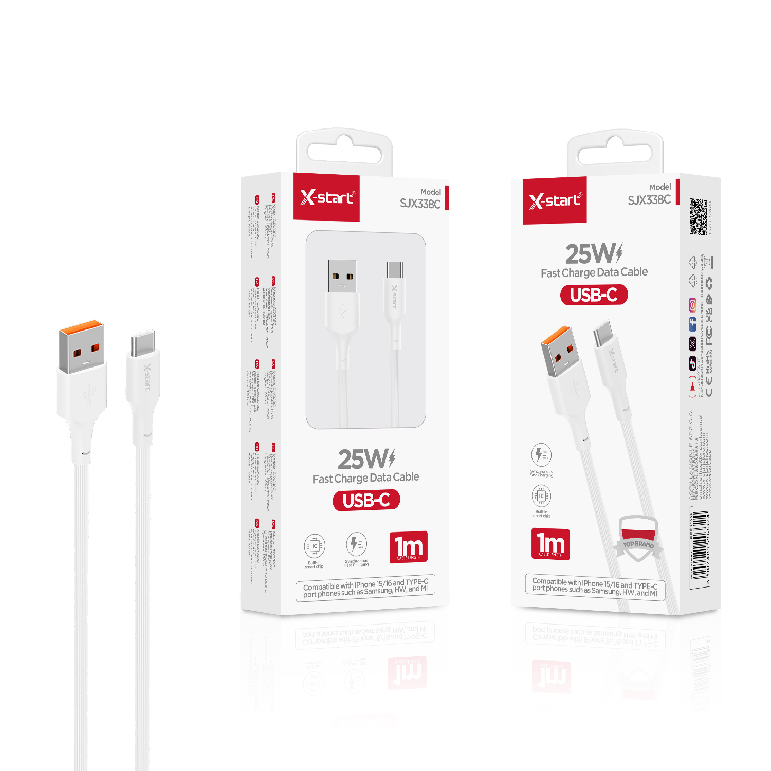 SJX338C 快充数据线White 25W Fast Charging Cable 1M USB-A TO USB-C PVC Outer Sheath