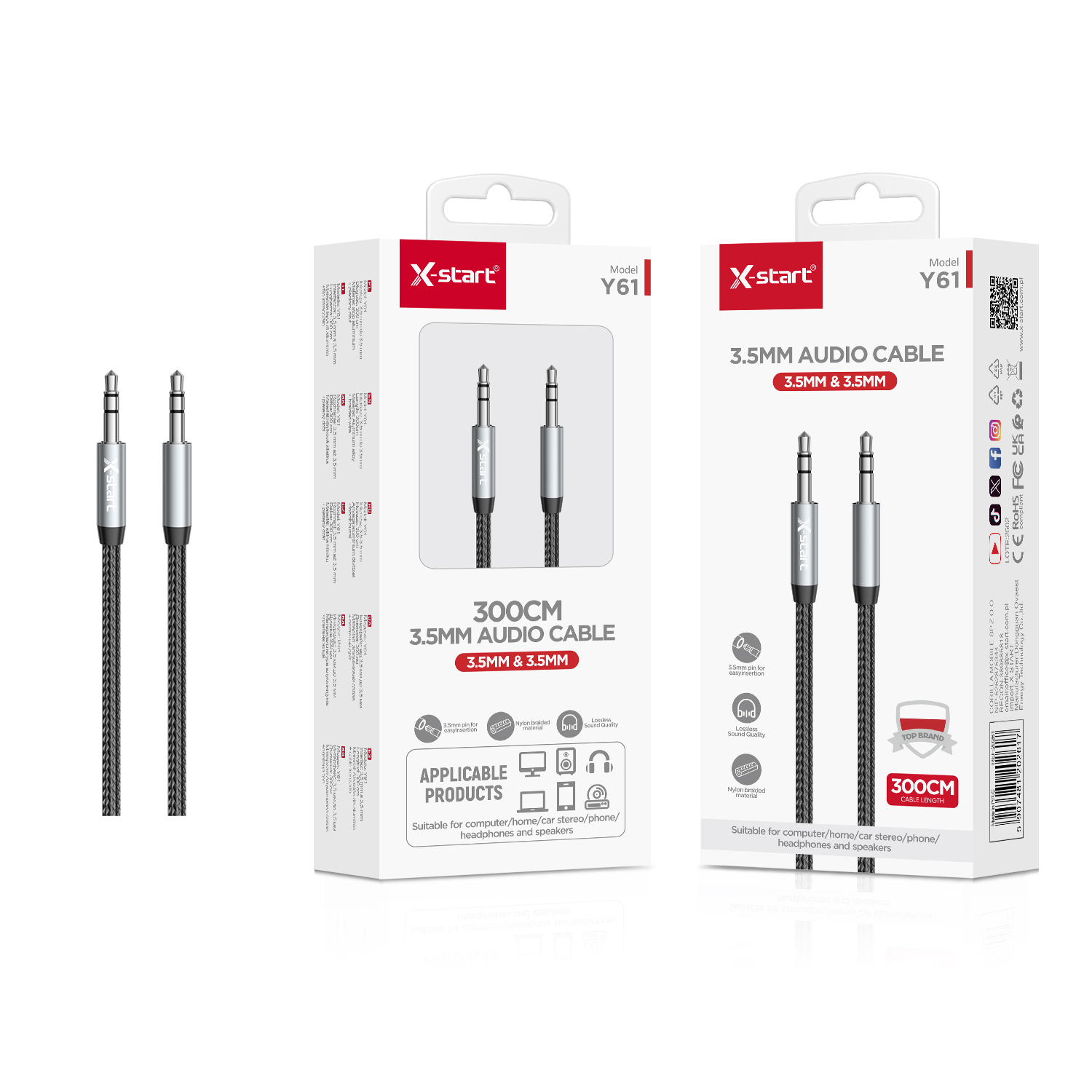 Y61 公座编织音频线Iron Gray Double 3.5mm Male Braided Audio Cable, 3m Length, Triple Pins, No Call Support, Braided Outer Sheath