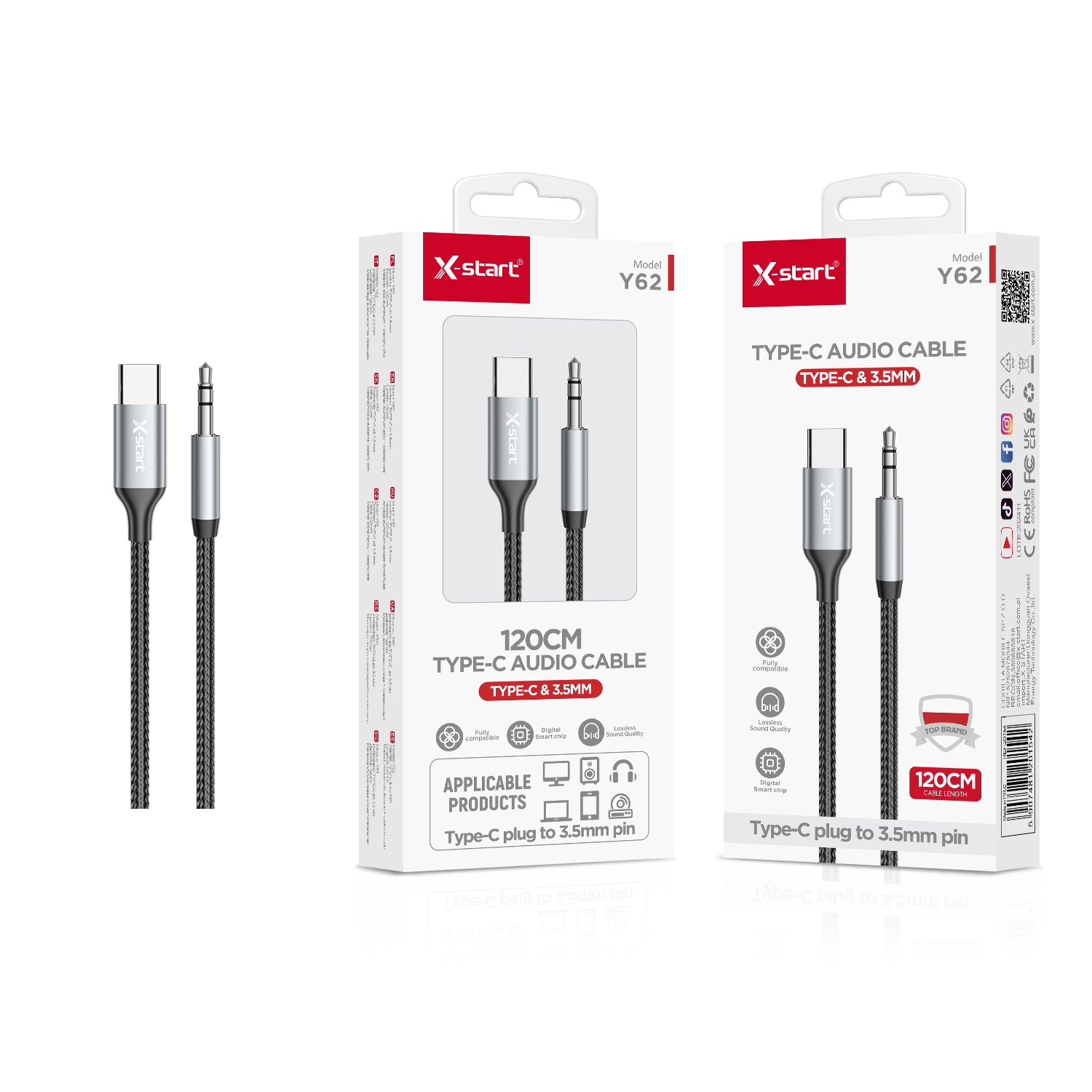 Y62 编织音频线1.2m Iron Gray Braided Audio Cable, Braided Outer Sheath, USB-C to 3.5mm Male Connector, Triple Pins, No Call Support