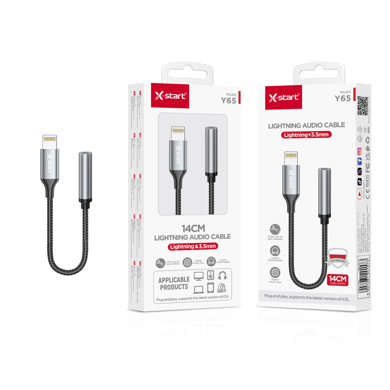 Y65 编织音频转接线0.14m Iron Gray Braided Audio Adapter Cable, Braided Outer Sheath, Lightning to 3.5mm Female Connector