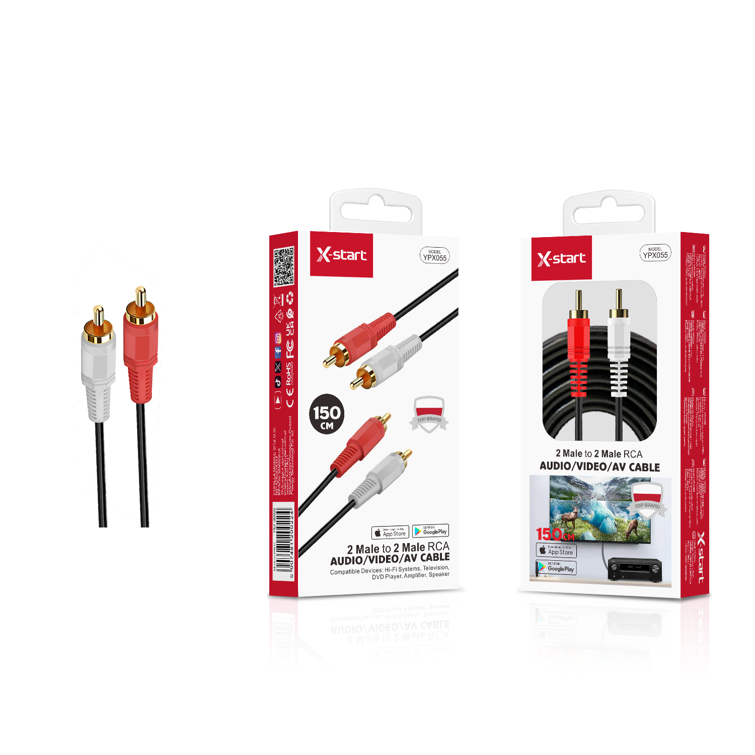 YPX055 音频线Black 2RCA Audio Cable, 1.5m Length, 2RCA to 2RCA, PVC Sheath