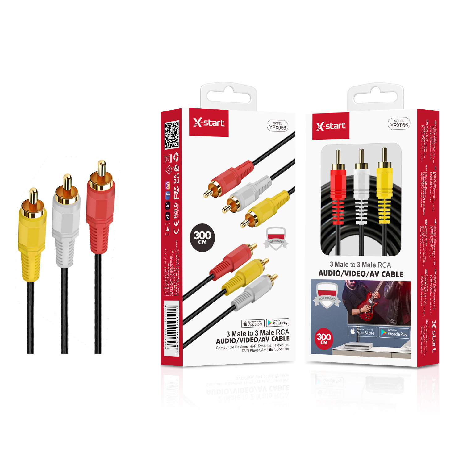 YPX056 音频线Black 3RCA Audio Cable, 3.0m Length, 3RCA to 3RCA, PVC Sheath