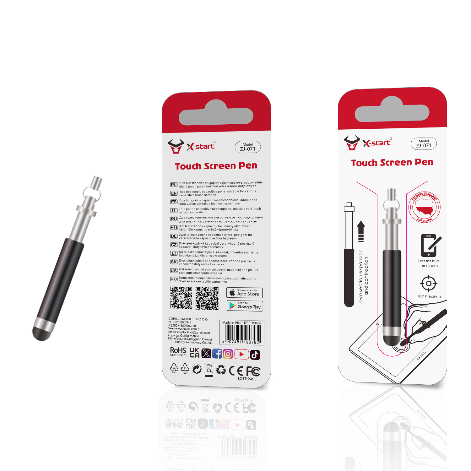ZJ071 黑色多功能 触摸屏笔带橡胶头用于触控控制,可伸缩长度 9.5cm